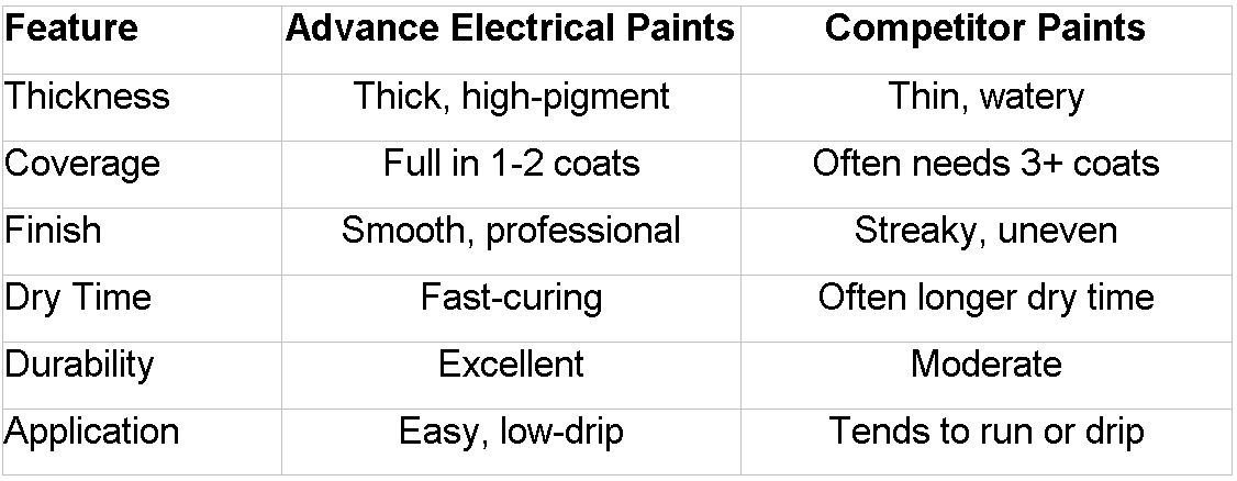 “We switched to Advance Electrical’s red insulator paint after getting tired of thin coats from another brand. Best decision we ever made.” – Lead Electrician, Ohio